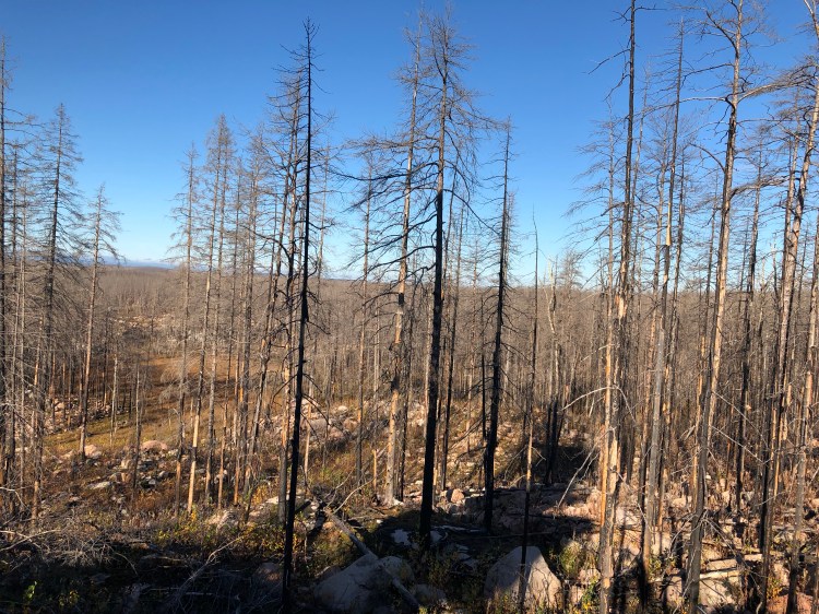 Det blev en härlig utflykt till ett fascinerade område. Tänk att det redan gått 4 år sedan branden. Det är ett enormt stort brandområde och det är grönt på marken och träden gråvita.